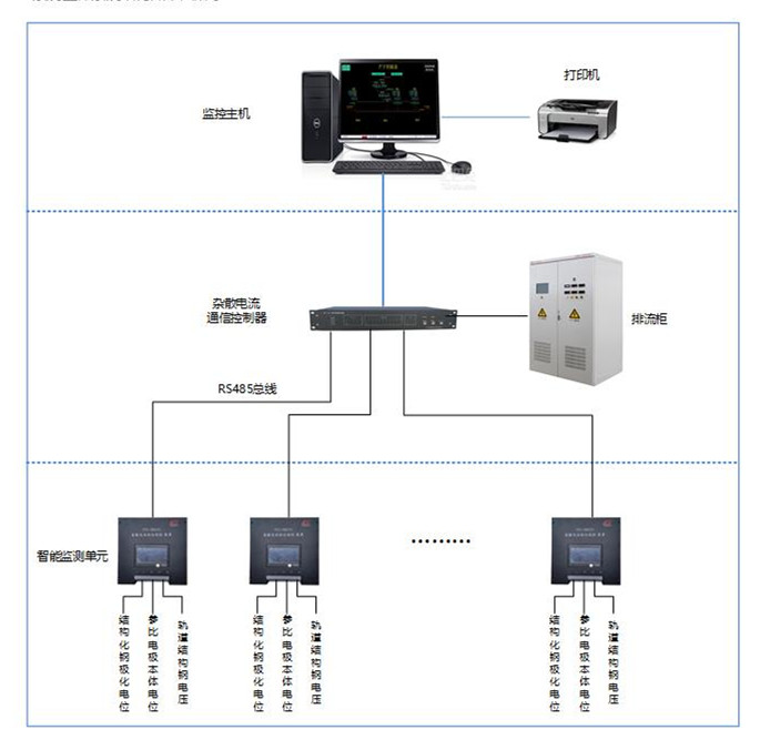 铁道杂散电流归纳监控体系重要构成包罗□:监控主站、杂散电流归纳监控装配、排流柜、参比电极等。